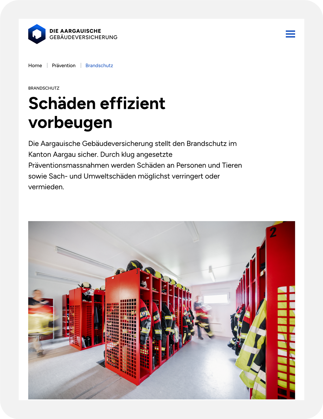 Die Aargauische Gebäudeversicherung (AGV) hat ihren Markenauftritt erneuert. Im Zuge des neuen Brandings hat auch die 2015 von neofluxe umgesetzten Website der AGV ein sowohl visuelles als auch technisches Facelift erhalten.