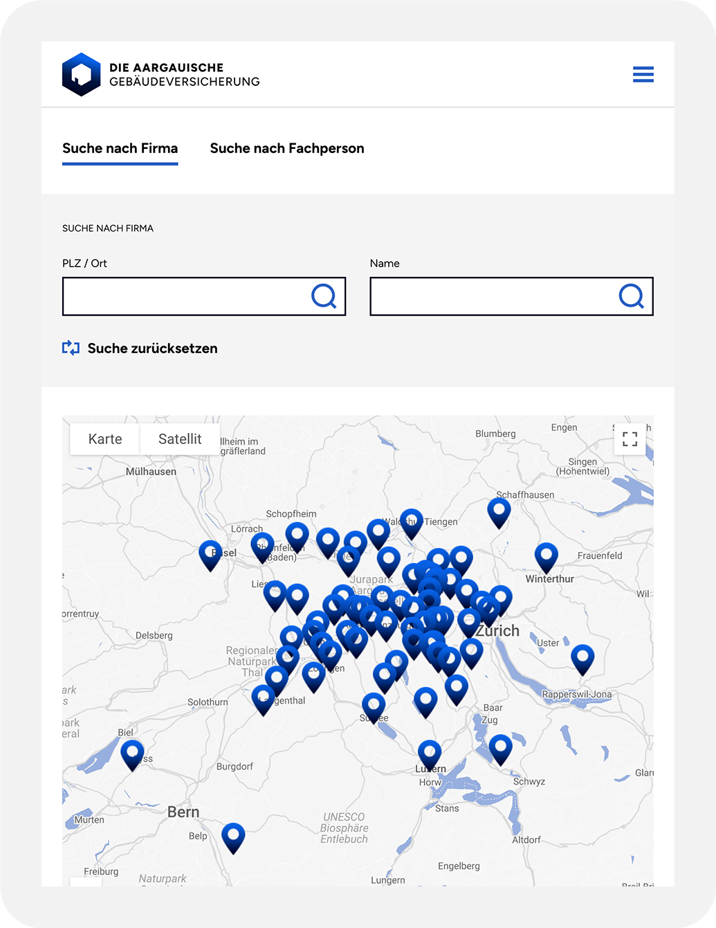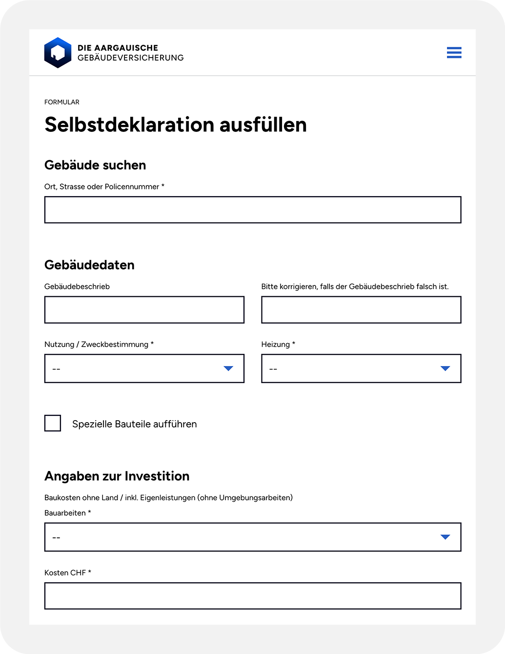 Der Webauftritt enthält diverse Applikationen, welche via Schnittstelle direkt in die produktive SAP-Umgebung der Aargauischen Gebäudeversicherung eingreifen.