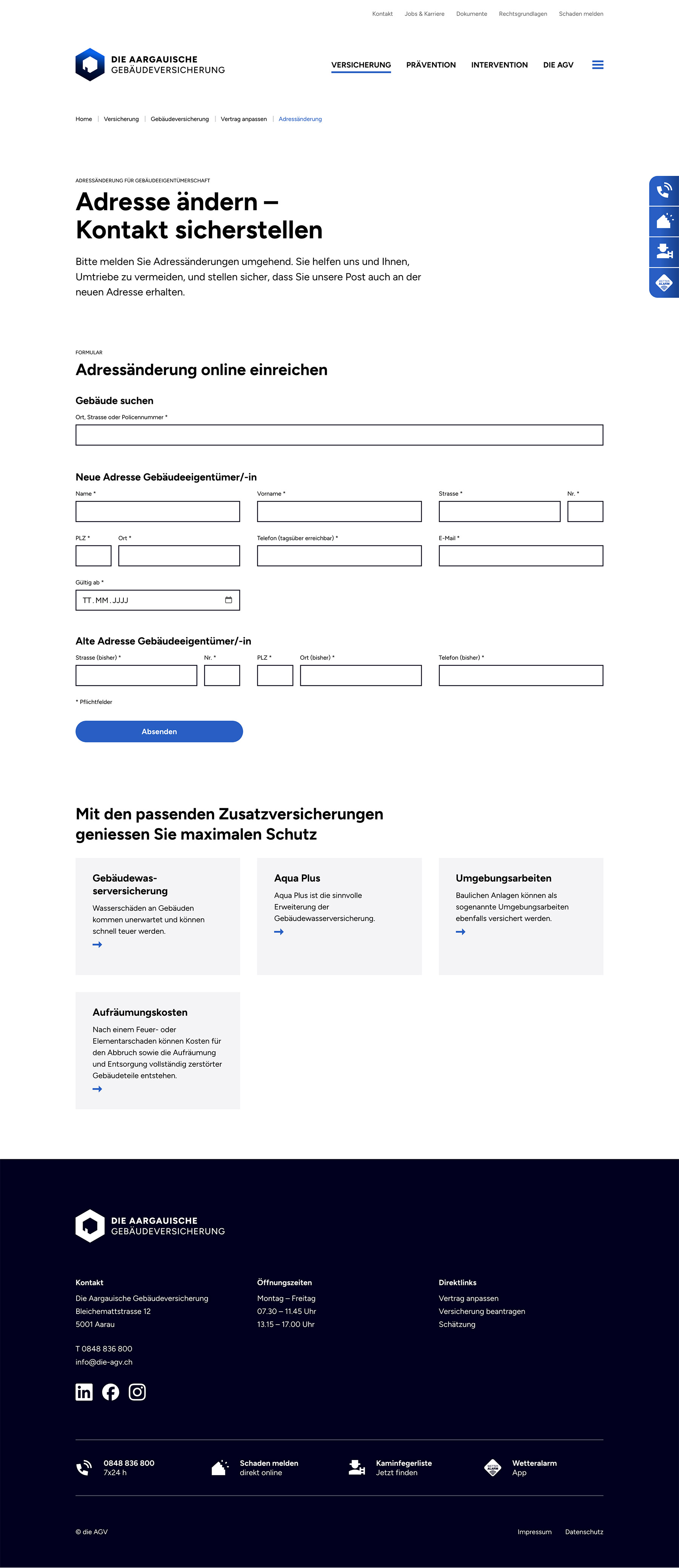 Der Webauftritt enthält diverse Applikationen, welche via Schnittstelle direkt in die produktive SAP-Umgebung der Aargauischen Gebäudeversicherung eingreifen.