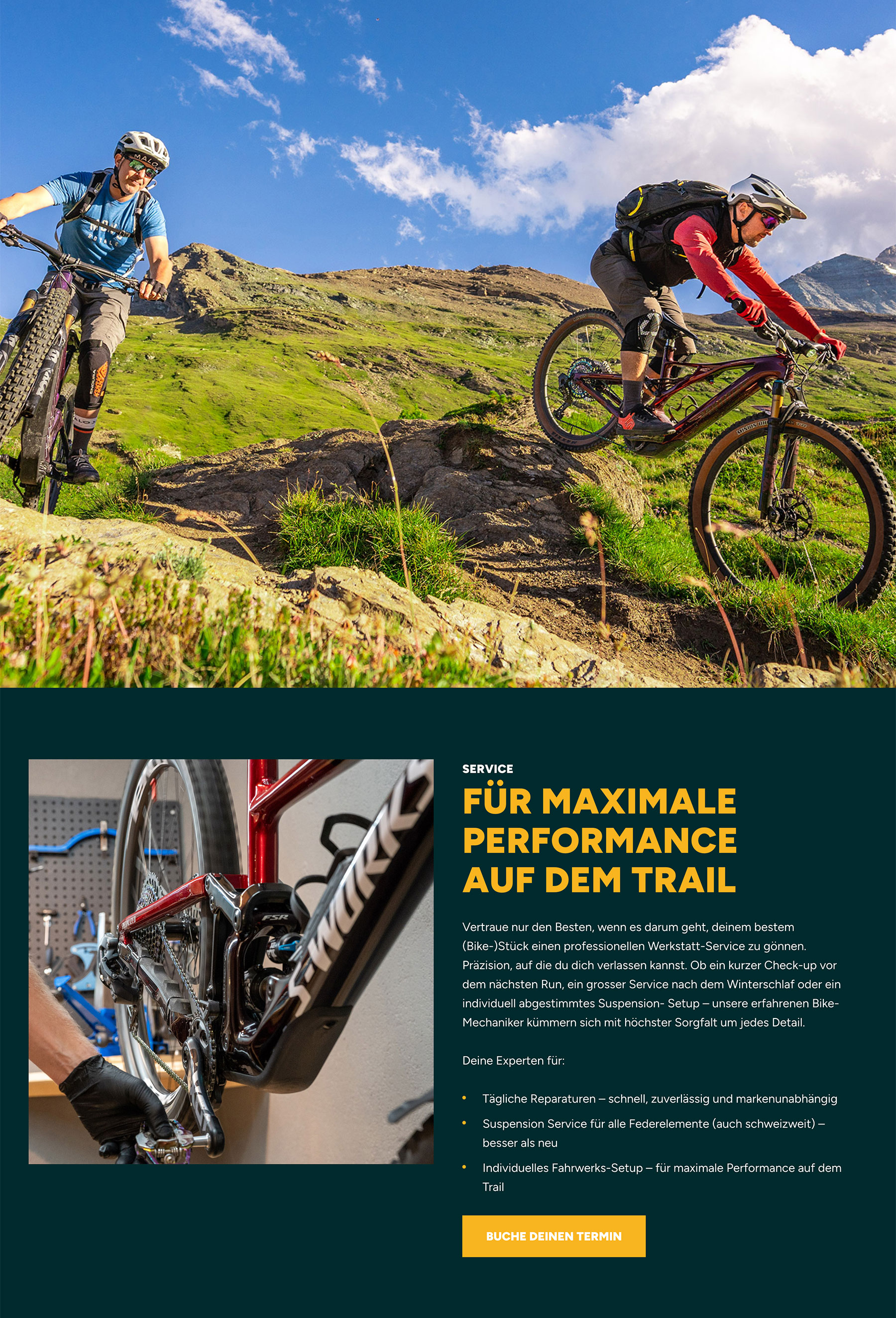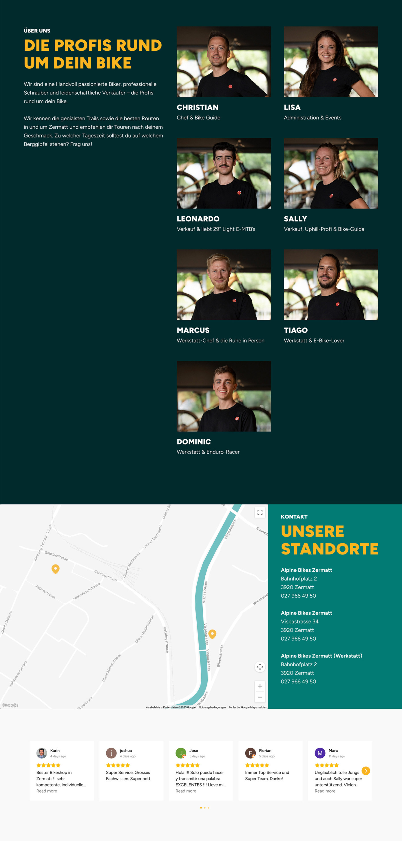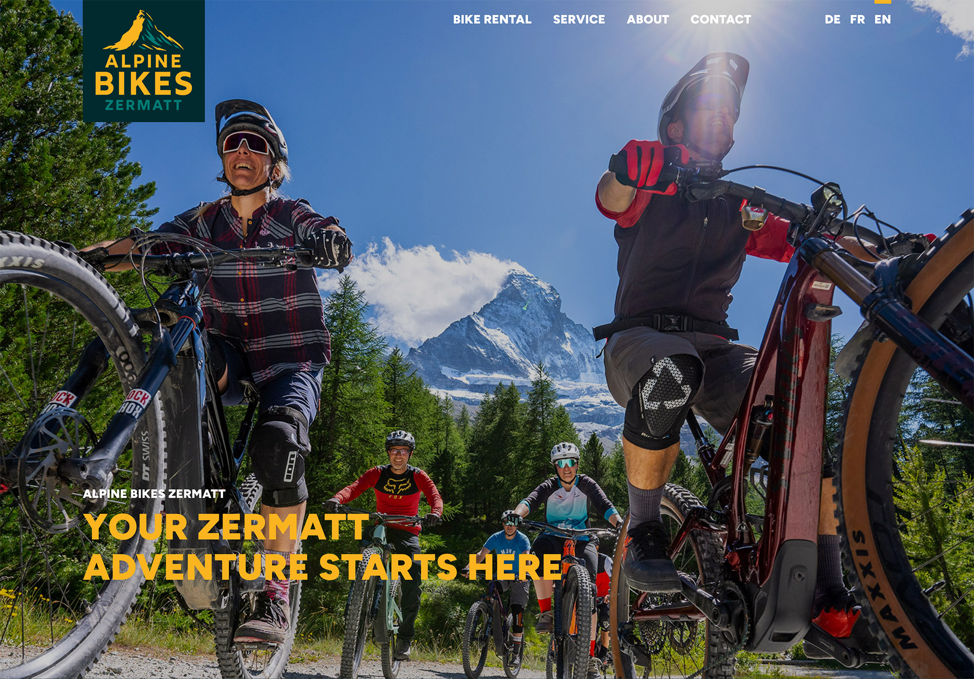 Die Gründung von Alpine Bikes Zermatt erfolgte mitten in der laufenden Bike Saison. Um die Produktionszeit kurz zu halten, wurde deshalb auf eine Landingpage gesetzt, wo sich alle wichtigen Informationen zur Bike Vermietung, Werkstatt und Verkauf finden. Die initiale Übersetzung in drei Sprachen erfolgte automatisch mit WPML AI und Deepl.
