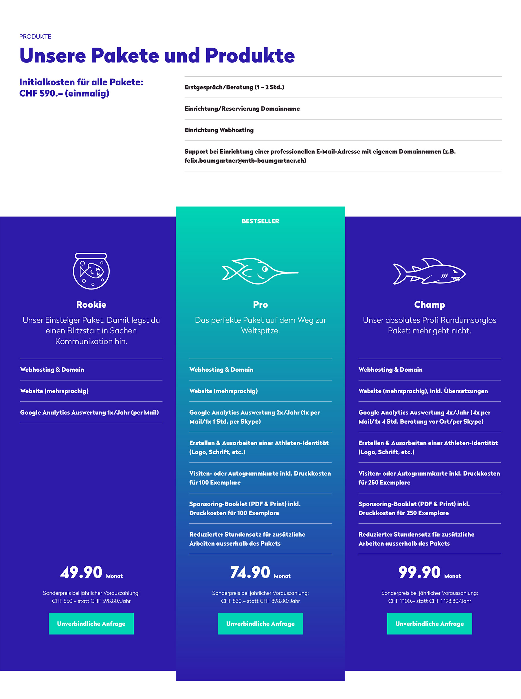 So vielfältig wie die Sportarten sind auch die Angebote an die Sportler, die von der Website über Sponsorendossiers und Autogrammkarten bis zum Logodesign vieles beinhalten.